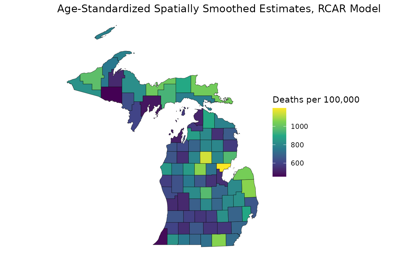 title = "Age-Standardized Spatially Smoothed Estimates, RCAR Model",