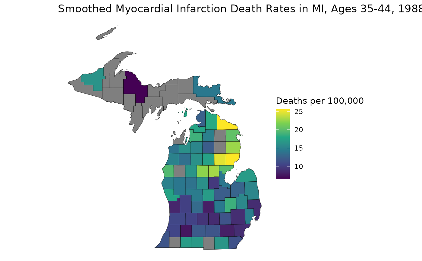 title = "Smoothed Myocardial Infarction Death Rates in MI, Ages 35-44, 1988",